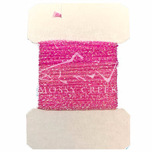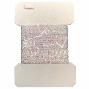 Sparkle Braid contains several strands of mylar knitted into a cordlike material. The main ingredient for muddlers and many saltwater patterns.