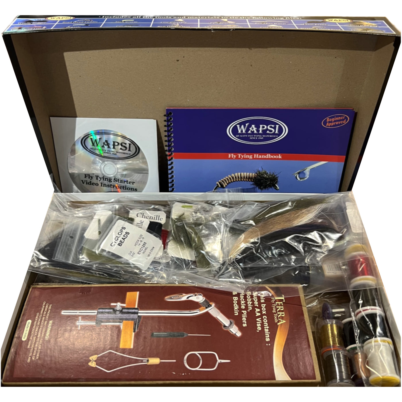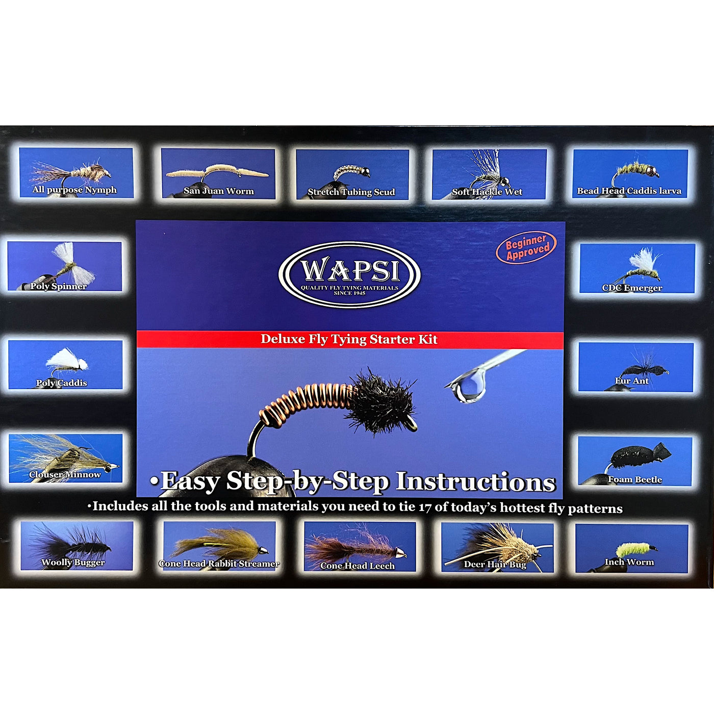 {"id":8111711158505,"title":"Wapsi Deluxe Fly Tying Starter kit","handle":"wapsi-deluxe-fly-tying-starter-kit","description":"Our best selling fly tying kit for decades! This kit has all of the tools and materials you need to get started. There are hooks and materials to tie 16 different patterns and there is a dvd and a booklet that will walk you through each fly! You won't find a better deal on","published_at":"2023-11-01T13:51:40-04:00","created_at":"2023-05-09T12:53:02-04:00","vendor":"Wapsi Fly","type":"Tying kit","tags":[],"price":12900,"price_min":12900,"price_max":12900,"available":true,"price_varies":false,"compare_at_price":null,"compare_at_price_min":0,"compare_at_price_max":0,"compare_at_price_varies":false,"variants":[{"id":44734611357929,"title":"Default Title","option1":"Default Title","option2":null,"option3":null,"sku":"","requires_shipping":true,"taxable":true,"featured_image":null,"available":true,"name":"Wapsi Deluxe Fly Tying Starter kit","public_title":null,"options":["Default Title"],"price":12900,"weight":0,"compare_at_price":null,"inventory_quantity":2,"inventory_management":"shopify","inventory_policy":"deny","barcode":"11357929","requires_selling_plan":false,"selling_plan_allocations":[]}],"images":["\/\/mossycreekflyfishing.com\/cdn\/shop\/files\/33493164032233.jpg?v=1761347929","\/\/mossycreekflyfishing.com\/cdn\/shop\/files\/33493164065001.jpg?v=1761347975"],"featured_image":"\/\/mossycreekflyfishing.com\/cdn\/shop\/files\/33493164032233.jpg?v=1761347929","options":["Title"],"media":[{"alt":"Wapsi Deluxe Fly Tying Starter kit - Mossy Creek Fly Fishing","id":33493164032233,"position":1,"preview_image":{"aspect_ratio":1.0,"height":3000,"width":3000,"src":"\/\/mossycreekflyfishing.com\/cdn\/shop\/files\/33493164032233.jpg?v=1761347929"},"aspect_ratio":1.0,"height":3000,"media_type":"image","src":"\/\/mossycreekflyfishing.com\/cdn\/shop\/files\/33493164032233.jpg?v=1761347929","width":3000},{"alt":"Wapsi Deluxe Fly Tying Starter kit - Mossy Creek Fly Fishing","id":33493164065001,"position":2,"preview_image":{"aspect_ratio":1.0,"height":3000,"width":3000,"src":"\/\/mossycreekflyfishing.com\/cdn\/shop\/files\/33493164065001.jpg?v=1761347975"},"aspect_ratio":1.0,"height":3000,"media_type":"image","src":"\/\/mossycreekflyfishing.com\/cdn\/shop\/files\/33493164065001.jpg?v=1761347975","width":3000}],"requires_selling_plan":false,"selling_plan_groups":[],"content":"Our best selling fly tying kit for decades! This kit has all of the tools and materials you need to get started. There are hooks and materials to tie 16 different patterns and there is a dvd and a booklet that will walk you through each fly! You won't find a better deal on"}