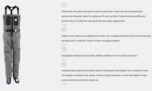 {"id":7973877874921,"title":"Skwala RS Wader","handle":"skwala-rs-wader","description":"\u003cp\u003e\u003cstrong\u003e\u003ciframe title=\"YouTube video player\" src=\"https:\/\/www.youtube.com\/embed\/BWhwVjXZXgM?start=1\" height=\"315\" width=\"560\" allowfullscreen=\"\" allow=\"accelerometer; autoplay; clipboard-write; encrypted-media; gyroscope; picture-in-picture\" frameborder=\"0\"\u003e\u003c\/iframe\u003e\u003c\/strong\u003e\u003c\/p\u003e\n\u003cp\u003e\u003cstrong\u003eMade for anglers who sleep in their trucks but live in their waders, RS Waders offer a completely different wader experience—reimagined from the straps to the gravel gaiters and everything in-between.\u003c\/strong\u003e\u003c\/p\u003e\n\u003cp\u003e\u003cspan data-mce-fragment=\"1\"\u003eBuilt for anglers who immerse themselves in long days and even longer seasons, RS Waders set a new standard for durability and comfort. We reimagined fly fishing waders, from a buckle-less, load distributing shoulder yoke; to an integrated, lumbar supporting wading belt; to unique fourchette leg seams for increased mobility and comfort; to reinforced, boot and sock protecting gravel gaiters. If you relentlessly pursue fish—belly-deep in the flow, scrambling over slick-sharp canyon boulders, punching through brambles, briars, and devil’s club—RS Waders will reset your expectations.\u003c\/span\u003e\u003c\/p\u003e\n\u003ch3 class=\"product-single__accordion__title-text h4\"\u003eProduct Specs\u003c\/h3\u003e\n\u003cdiv id=\"acc-9\" class=\"product-single__accordion__item js-accordion-info js-active\"\u003e\n\u003cdiv class=\"product-single__accordion__item-wrap rte\"\u003e• Weight: 55.6 oz – Large\u003cbr\u003e\n\u003c\/div\u003e\n\u003cdiv class=\"product-single__accordion__item-wrap rte\"\u003e• Textile: 4-layer waterproof\/breathable laminate with C6 DWR finish \/\/ Ultra-dense 100% polyester microfiber double weave face textile \/\/ Anti-microbial treatment on interior scrim layer\u003cbr\u003e\n\u003c\/div\u003e\n\u003cdiv class=\"product-single__accordion__item-wrap rte\"\u003e\n\u003cp\u003e\u003cspan class=\"metafield-multi_line_text_field\"\u003e• Stockingfoot Bootie: 4mm neoprene with laminated antimicrobial jersey \/\/ Spandura® Yarns in sole panel\u003cbr\u003e• Zippers: YKK® Aquaseal® \u0026amp; YKK Aquaguard®\u003c\/span\u003e\u003c\/p\u003e\n\u003ctable class=\"sizing-chart\"\u003e\n\u003cthead\u003e\n\u003ctr\u003e\n\u003cth\u003eWaders\u003c\/th\u003e\n\u003c\/tr\u003e\n\u003c\/thead\u003e\n\u003ctbody\u003e\n\u003ctr\u003e\n\u003cth\u003eSize\u003c\/th\u003e\n\u003cth\u003eChest\u003c\/th\u003e\n\u003cth\u003eWaist\u003c\/th\u003e\n\u003cth\u003eInseam\u003c\/th\u003e\n\u003cth\u003eShoe Size\u003c\/th\u003e\n\u003c\/tr\u003e\n\u003ctr\u003e\n\u003ctd\u003eMedium\u003c\/td\u003e\n\u003ctd\u003e37-40\"\u003c\/td\u003e\n\u003ctd\u003e32-34\"\u003c\/td\u003e\n\u003ctd\u003e31-33\"\u003c\/td\u003e\n\u003ctd\u003e9-11\u003c\/td\u003e\n\u003c\/tr\u003e\n\u003ctr\u003e\n\u003ctd\u003eMedium Tall\u003c\/td\u003e\n\u003ctd\u003e37-40\"\u003c\/td\u003e\n\u003ctd\u003e32-34\"\u003c\/td\u003e\n\u003ctd\u003e34-36\"\u003c\/td\u003e\n\u003ctd\u003e9-11\u003c\/td\u003e\n\u003c\/tr\u003e\n\u003ctr\u003e\n\u003ctd\u003eLarge\u003c\/td\u003e\n\u003ctd\u003e41-44\"\u003c\/td\u003e\n\u003ctd\u003e35-38\"\u003c\/td\u003e\n\u003ctd\u003e31-33\"\u003c\/td\u003e\n\u003ctd\u003e9-11, 12-14\u003c\/td\u003e\n\u003c\/tr\u003e\n\u003ctr\u003e\n\u003ctd\u003eLarge Tall\u003c\/td\u003e\n\u003ctd\u003e41-44\"\u003c\/td\u003e\n\u003ctd\u003e35-38\"\u003c\/td\u003e\n\u003ctd\u003e34-36\"\u003c\/td\u003e\n\u003ctd\u003e9-11, 12-14\u003c\/td\u003e\n\u003c\/tr\u003e\n\u003ctr\u003e\n\u003ctd\u003eExtra Large\u003c\/td\u003e\n\u003ctd\u003e45-48\"\u003c\/td\u003e\n\u003ctd\u003e39-42\"\u003c\/td\u003e\n\u003ctd\u003e31-33\"\u003c\/td\u003e\n\u003ctd\u003e9-11, 12-14\u003c\/td\u003e\n\u003c\/tr\u003e\n\u003ctr\u003e\n\u003ctd\u003eExtra Large Tall\u003c\/td\u003e\n\u003ctd\u003e45-48\"\u003c\/td\u003e\n\u003ctd\u003e39-42\"\u003c\/td\u003e\n\u003ctd\u003e34-36\"\u003c\/td\u003e\n\u003ctd\u003e9-11, 12-14\u003c\/td\u003e\n\u003c\/tr\u003e\n\u003ctr\u003e\n\u003ctd\u003eDouble Extra Large\u003c\/td\u003e\n\u003ctd\u003e49-52\"\u003c\/td\u003e\n\u003ctd\u003e43-46\"\u003c\/td\u003e\n\u003ctd\u003e31-33\"\u003c\/td\u003e\n\u003ctd\u003e12-14\u003c\/td\u003e\n\u003c\/tr\u003e\n\u003c\/tbody\u003e\n\u003c\/table\u003e\n\u003cbr\u003e\u003cmeta charset=\"UTF-8\"\u003e\n\u003cdiv data-mce-fragment=\"1\" class=\"home-custom__item-content--text-bullet u-text-center\"\u003e\n\u003cdiv data-mce-fragment=\"1\" data-sr-id=\"2\" class=\"section__title section__title--desc js-sr-loaded\"\u003e\n\u003ch3 data-mce-fragment=\"1\" class=\"section__title-text\"\u003ePurpose Built\u003c\/h3\u003e\n\u003c\/div\u003e\n\u003cdiv data-mce-fragment=\"1\" class=\"home-custom__item-text rte\"\u003e\n\u003cp data-mce-fragment=\"1\"\u003e\u003cspan data-mce-fragment=\"1\" class=\"metafield-multi_line_text_field\"\u003eFishing gear should keep you dry and handle the adventures you take it on. The RS Collection was carefully constructed as a system comprised of a center zip wader and full-length jacket to keep you dry in the harshest conditions. We combined innovative textiles and laminates to construct a line that is as durable and waterproof as it is comfortable. We made a system that can handle whatever you dish out. \u003c\/span\u003e\u003c\/p\u003e\n\u003c\/div\u003e\n\u003c\/div\u003e\n\u003cdiv data-mce-fragment=\"1\" class=\"home-custom__item-content--text-bullet\"\u003e\n\u003cdiv data-mce-fragment=\"1\" data-sr-id=\"3\" class=\"section__title section__title--desc js-sr-loaded\"\u003e\n\u003ch3 data-mce-fragment=\"1\" class=\"section__title-text\"\u003eAdvanced Durability\u003c\/h3\u003e\n\u003c\/div\u003e\n\u003cdiv data-mce-fragment=\"1\" class=\"home-custom__item-text rte\"\u003e\n\u003cp data-mce-fragment=\"1\"\u003e\u003cspan data-mce-fragment=\"