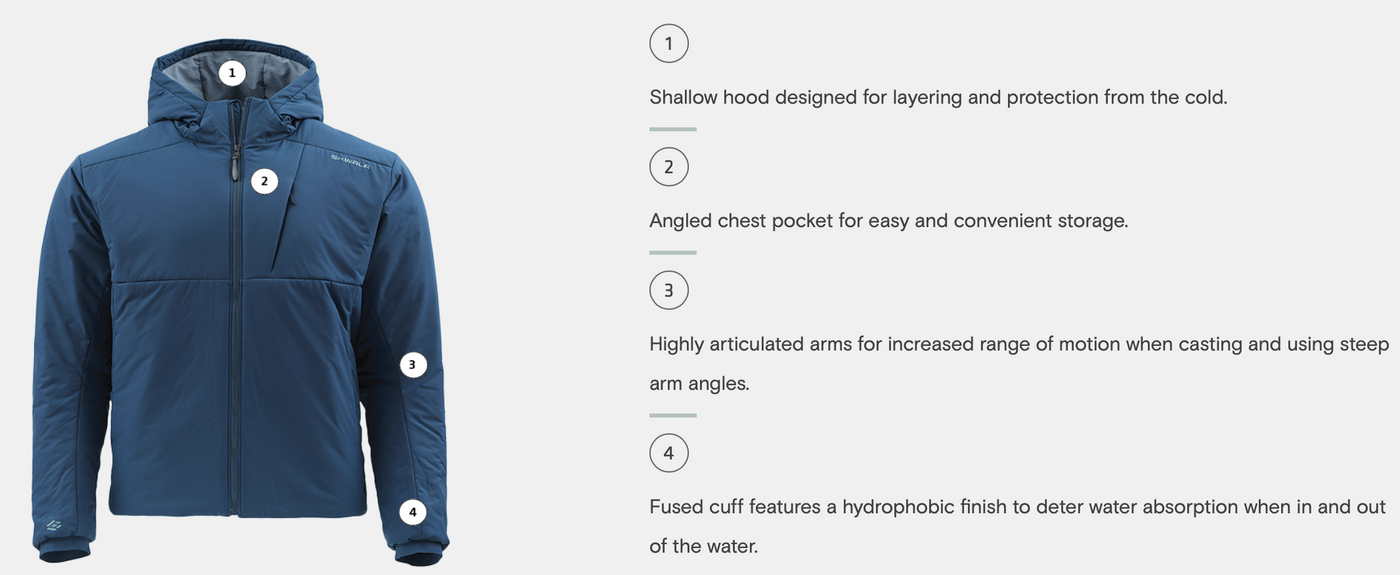 {"id":8348258631913,"title":"Skwala Fusion 3\/2 Puffy Midnight","handle":"skwala-fusion-3-2-puffy-midnight","description":"\u003cp\u003e\u003cstrong\u003e\u003ciframe title=\"YouTube video player\" src=\"https:\/\/www.youtube.com\/embed\/EQGlYOgl50Q\" height=\"315\" width=\"560\" allowfullscreen=\"\" allow=\"accelerometer; autoplay; clipboard-write; encrypted-media; gyroscope; picture-in-picture\" frameborder=\"0\"\u003e\u003c\/iframe\u003e\u003c\/strong\u003e\u003c\/p\u003e\n\u003cp\u003e\u003cstrong\u003eBuilt to keep you on the water after the temps drop and the tourists flee, our Fusion 3\/2 Puffy features a stretch insulation and outer shell that is both water resistant and breathable.\u003c\/strong\u003e\u003cbr\u003e\u003c\/p\u003e\n\u003cp data-mce-fragment=\"1\"\u003eWe built the Fusion 3\/2 Puffy to be your go-to layering option when both the air and the fish bite. With 90 grams of insulation wrapping your core and 60 grams down the sleeves, this jacket maintains optimal body heat without adding unnecessary bulk that can get in the way when you’re casting. And this isn’t just any insulation, the Toray® 3DEFX+™ insulation paired with a Primeflex\u003cspan data-mce-fragment=\"1\"\u003e™\u003c\/span\u003e shell, stretches and contracts to move with you while keeping you toasty. Its hydrophobic shell repels water features a fitted, fused cuff that won’t absorb water after a quick dunk. The 3\/2 Puffy is the perfect stand-alone jacket for crisp mornings or clear fall days and the perfect mid-layer to pair with our RS Jacket when the weather turns \u003cem data-mce-fragment=\"1\"\u003ereally\u003c\/em\u003e Western.\u003c\/p\u003e\n\u003cp data-mce-fragment=\"1\"\u003eThe Fusion 3\/2 Puffy is designed to be worn as an insulation piece either under rainwear shell or on its own. We recommend sizing the jacket to your true size whether it will be worn as outerwear or as an insulation layer. \u003c\/p\u003e\n\u003ch3 class=\"product-single__accordion__title-text h4\"\u003eProduct Specs\u003c\/h3\u003e\n\u003cdiv class=\"product-single__accordion__item js-accordion-info js-active\" id=\"acc-9\"\u003e\n\u003cdiv class=\"product-single__accordion__item-wrap rte\"\u003e• Weight: 20.5 oz - Large\u003cbr\u003e\n\u003c\/div\u003e\n\u003cdiv class=\"product-single__accordion__item-wrap rte\"\u003e• Textile: 100% Polyester Primeflex™ stretch-woven face textile with C6 DWR finishing\u003cbr\u003e\n\u003c\/div\u003e\n\u003cdiv class=\"product-single__accordion__item-wrap rte\"\u003e• Insulation: 90g Toray 3DEFX+™ in the body \u0026amp; 60g 3DEFX+™ in sleeves\u003cbr\u003e\n\u003c\/div\u003e\n\u003cdiv class=\"product-single__accordion__item-wrap rte\"\u003e• Zippers: YKK® Vislon® zipper\u003cbr\u003e\n\u003c\/div\u003e\n\u003cdiv class=\"product-single__accordion__item-wrap rte\"\u003e\u003c\/div\u003e\n\u003cdiv class=\"product-single__accordion__item-wrap rte\"\u003e\n\u003ctable class=\"sizing-chart\"\u003e\n\u003cthead\u003e\n\u003ctr\u003e\n\u003cth\u003eJackets\/Tops\u003c\/th\u003e\n\u003c\/tr\u003e\n\u003c\/thead\u003e\n\u003ctbody\u003e\n\u003ctr\u003e\n\u003cth\u003eSize\u003c\/th\u003e\n\u003cth\u003eSleeve\u003c\/th\u003e\n\u003cth\u003eChest\u003c\/th\u003e\n\u003c\/tr\u003e\n\u003ctr\u003e\n\u003ctd\u003eMedium\u003c\/td\u003e\n\u003ctd\u003e34\"\u003c\/td\u003e\n\u003ctd\u003e37-40\"\u003c\/td\u003e\n\u003c\/tr\u003e\n\u003ctr\u003e\n\u003ctd\u003eLarge\u003c\/td\u003e\n\u003ctd\u003e35\"\u003c\/td\u003e\n\u003ctd\u003e41-44\"\u003c\/td\u003e\n\u003c\/tr\u003e\n\u003ctr\u003e\n\u003ctd\u003eExtra Large\u003c\/td\u003e\n\u003ctd\u003e36\"\u003c\/td\u003e\n\u003ctd\u003e45-48\"\u003c\/td\u003e\n\u003c\/tr\u003e\n\u003ctr\u003e\n\u003ctd\u003eDouble Extra Large\u003c\/td\u003e\n\u003ctd\u003e37\"\u003c\/td\u003e\n\u003ctd\u003e49-52\"\u003c\/td\u003e\n\u003c\/tr\u003e\n\u003c\/tbody\u003e\n\u003c\/table\u003e\n\u003cmeta charset=\"UTF-8\"\u003e\n\u003cdiv class=\"home-custom__item-content--text-bullet u-text-center\" data-mce-fragment=\"1\"\u003e\n\u003cdiv class=\"section__title section__title--desc js-sr-loaded\" data-sr-id=\"2\" data-mce-fragment=\"1\"\u003e\n\u003ch3 class=\"section__title-text\" data-mce-fragment=\"1\"\u003e\u003c\/h3\u003e\n\u003ch3 class=\"section__title-text\" data-mce-fragment=\"1\"\u003eStay Warmer, Fish Longer\u003c\/h3\u003e\n\u003c\/div\u003e\n\u003cdiv class=\"home-custom__item-text rte\" data-mce-fragment=\"1\"\u003e\n\u003cp data-mce-fragment=\"1\"\u003e\u003cspan class=\"metafield-multi_line_text_field\" data-mce-fragment=\"1\"\u003eDon’t let inclement weather, dropping temperatures or high wind forecasts keep you off the water. The Fusion Collection features a full-zip insulated jacket and hybrid fleece-down jacket. Full-stretch synthetic insulation and fabrics help you manage body heat and maintain comfort across a wide range of climates. With the Fusion Collection, you stay warmer so you can fish longer.\u003c\/span\u003e\u003c\/p\u003e\n\u003c\/div\u003e\n\u003c\/div\u003e\n\u003cdiv class=\"home-custom__item-content--text-bullet\" data-mce-fragment=\"1\"\u003e\n\u003cdiv class=\"section__title section__title--desc js-sr-loaded\" data-sr-id=\"3\" data-mce-fragment=\"1\"\u003e\n\u003ch3 class=\"section__title-text\" data-mce-fragment=\"1\"\u003eBeyond Insulation\u003c\/h3\u003e\n\u003c\/div\u003e\n\u003cdiv class=\"home-custom__item-text rte\" data-mce-fragment=\"1\"\u003e\n\u003cp data-mce-fragment=\"1\"\u003e\u003cspan class=\"metafield-multi_line_text_field\" data-mce-fragment=\"1\"\u003eBuilt for the coldest days on the water with Toray's 3DEFX+ to keep you warm all day. Engineered insulation paneling utilizes this full-stretch synthetic down in a performance mapped 3\/2 fill ratio(90g body\/60g sleeve \u0026amp; hood) to keep your core warm and maintain heat throughout the body. Spiral-shaped fibers in 3DEFX+ aid in providing higher volume to trap warm air and provide stretch to the garment. The fishing puffy just go